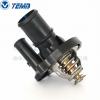 主要使用的节温器为蜡式节温器,当冷却温度低于规定值时,节温器感温体内的精致石蜡呈固态,节温器阀在弹簧的作用下关闭发动机与散热器之间的通道,冷却液经水泵返回发动机,进行发动机内小循环。当冷却液温度达到规定值后,石蜡开始融化逐渐变为液体,体积随之增大并压迫橡胶管使其收缩。在橡胶管收缩的同时对推杆作用以向上的推力,推杆对阀门有向下的反推力使阀门开启。这时冷却液经由散热器和节温器阀,再经水泵流回发动机,进行大循环。节温器大多数布置在汽缸盖出水管路中。